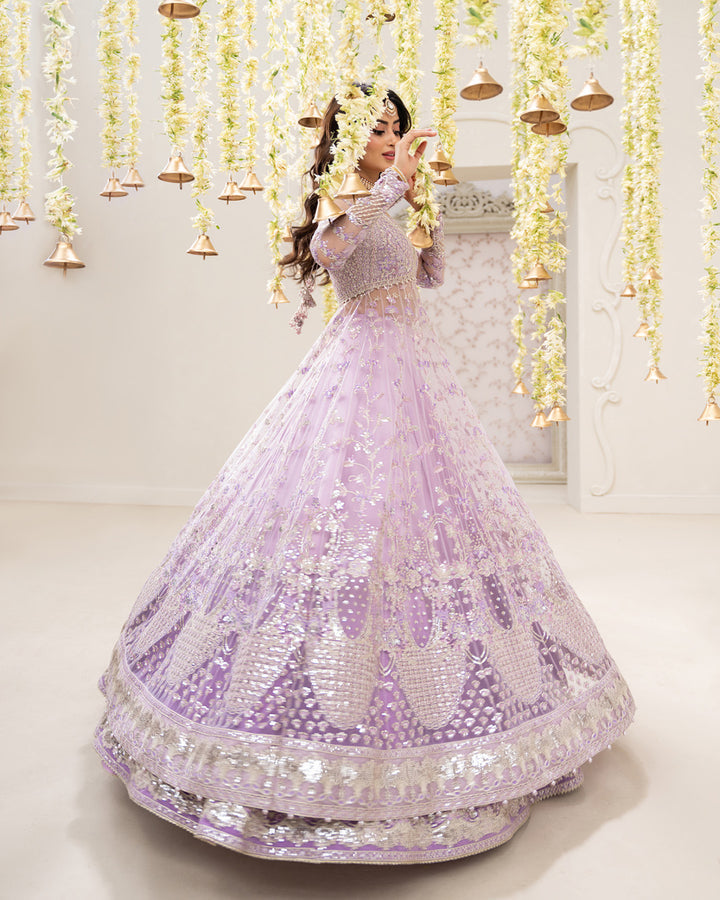 Fabric details: Embroidered net maxi, embroidered chiffon dupatta, printed & embroidered shamose silk lehnga