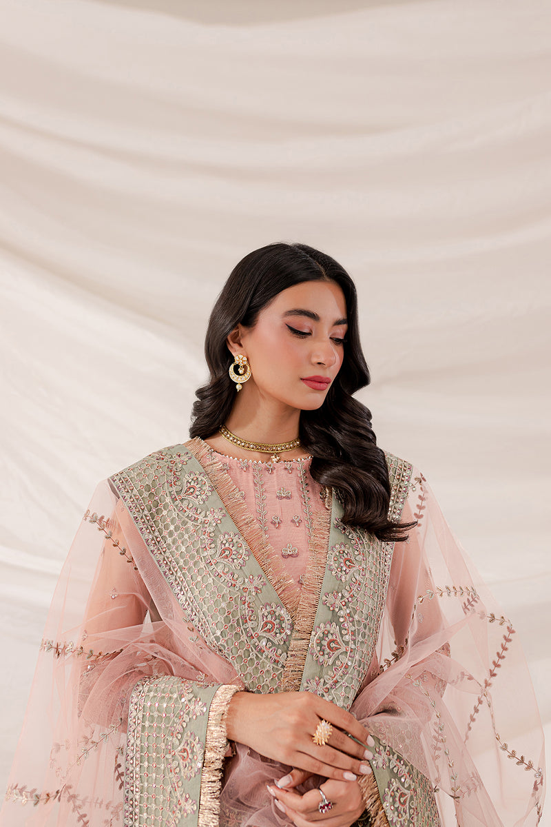 Three piece stitched embroidered net / organza / chiffon suits with embroidered net / organza / chiffon dupattas stitched & embellished by Blossoms by Azz.
