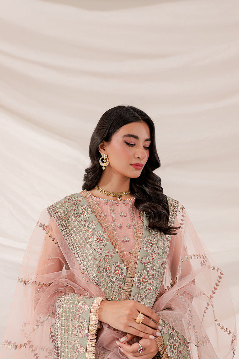 Fabric details: Embroidered net maxi, embroidered net dupatta, dyed raw silk skirt