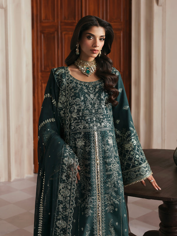 Fabric details: Embroidered and sequined raw silk shirt, embroidered and sequined chiffon dupatta, dyed raw silk sharara