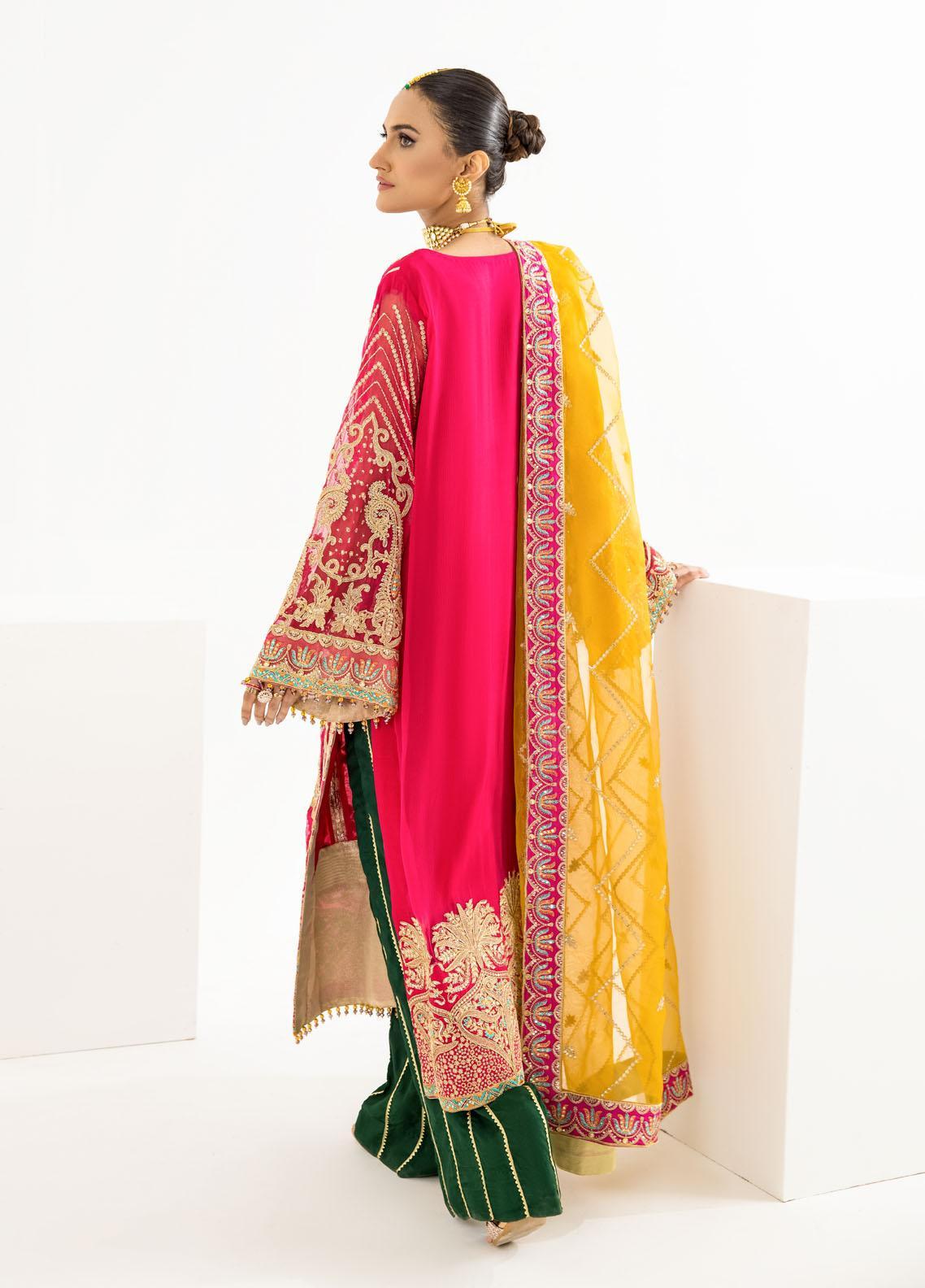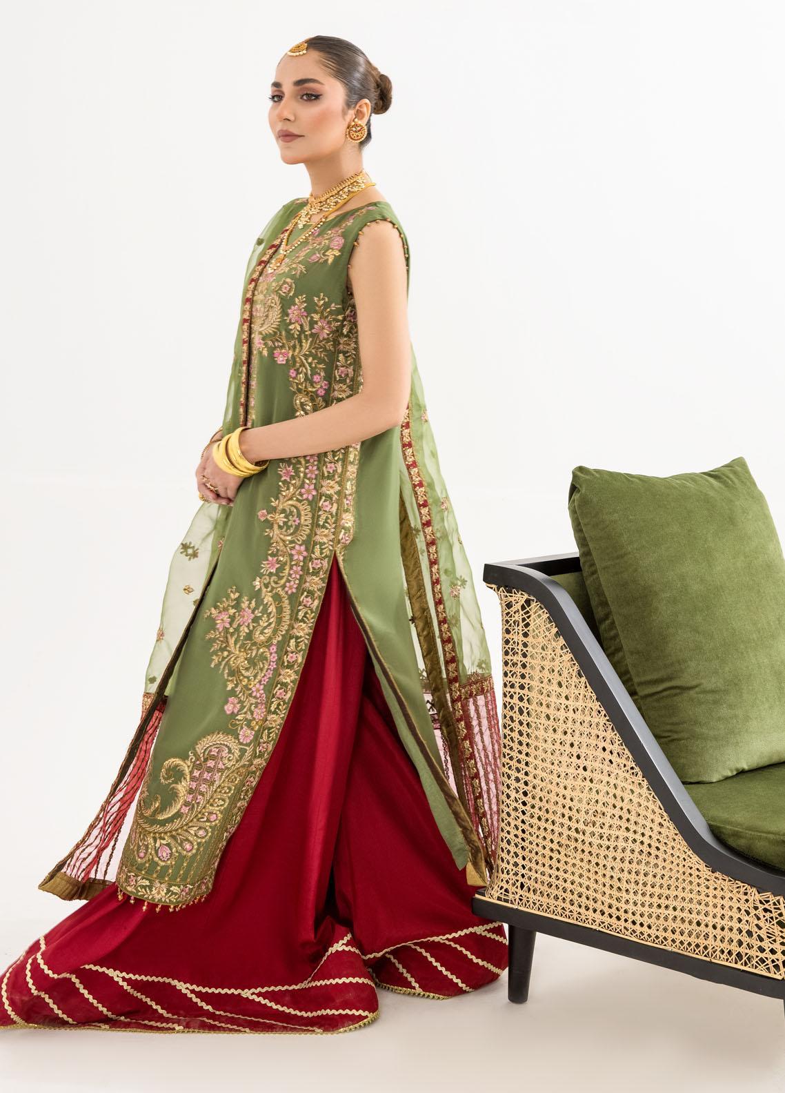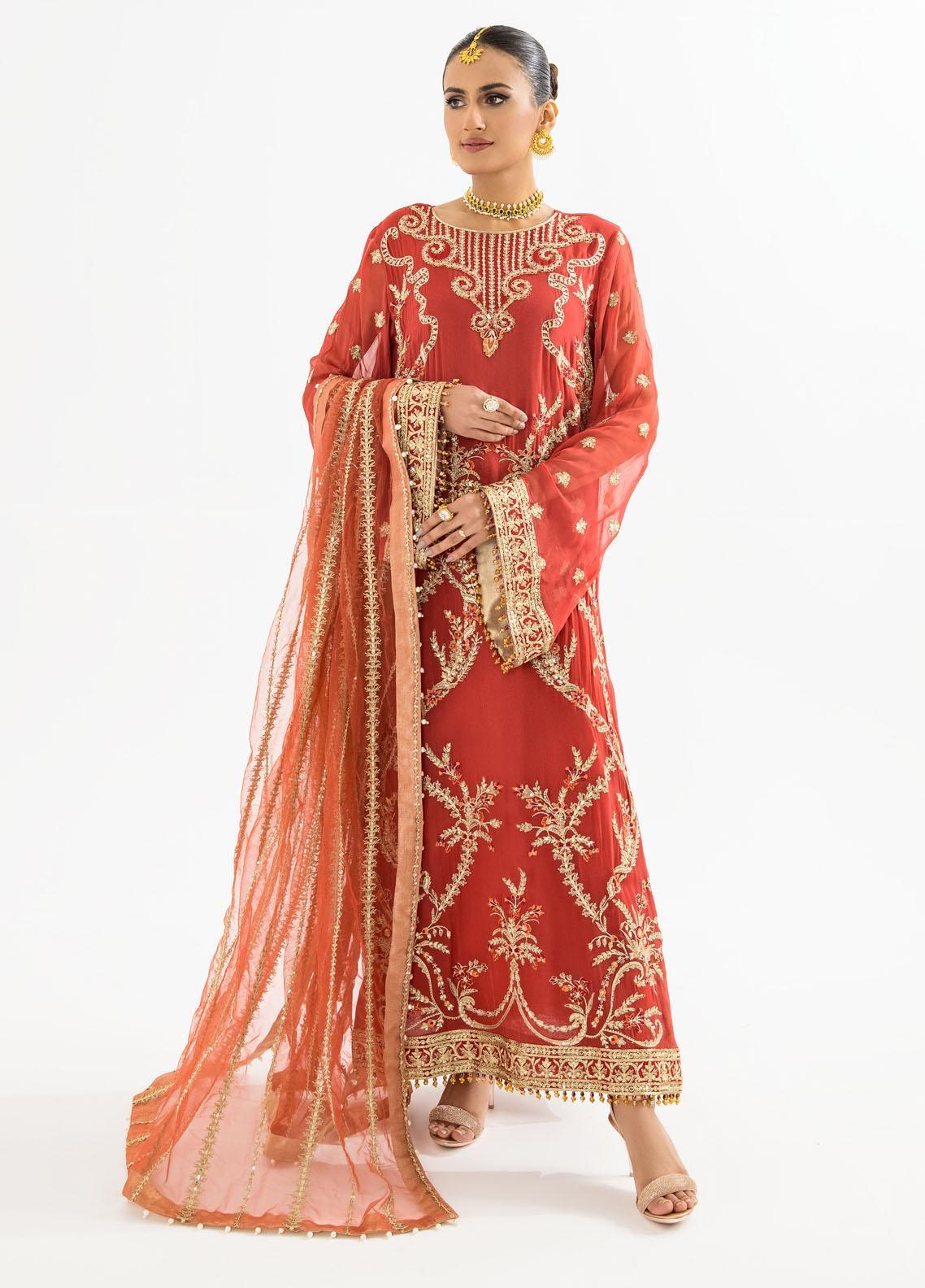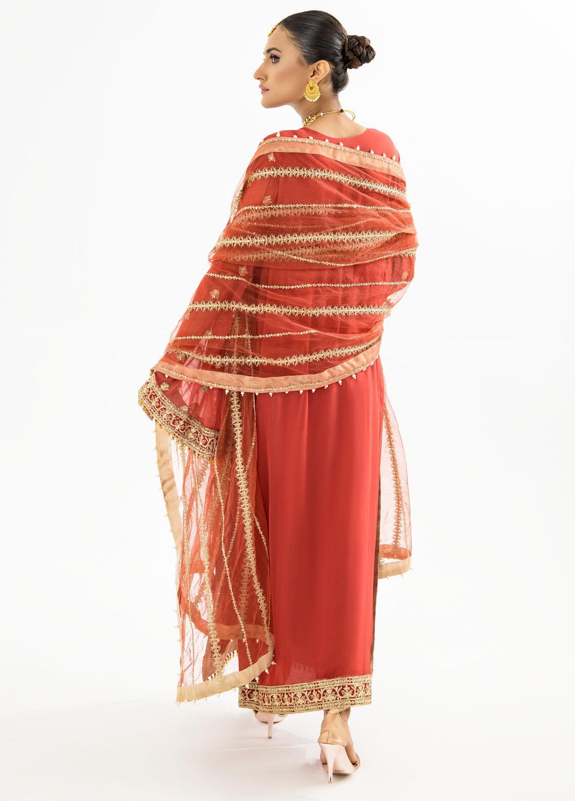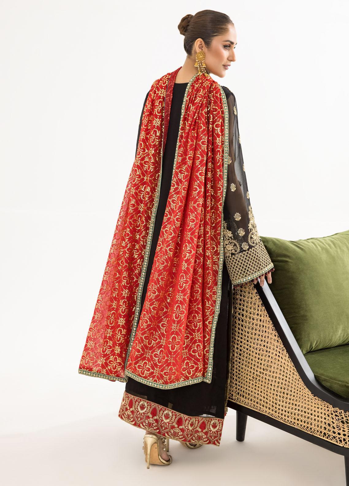 Three piece luxury embroidered chiffon suits with embroidered organza / chiffon dupattas stitched & embellished by Blossoms by Azz.