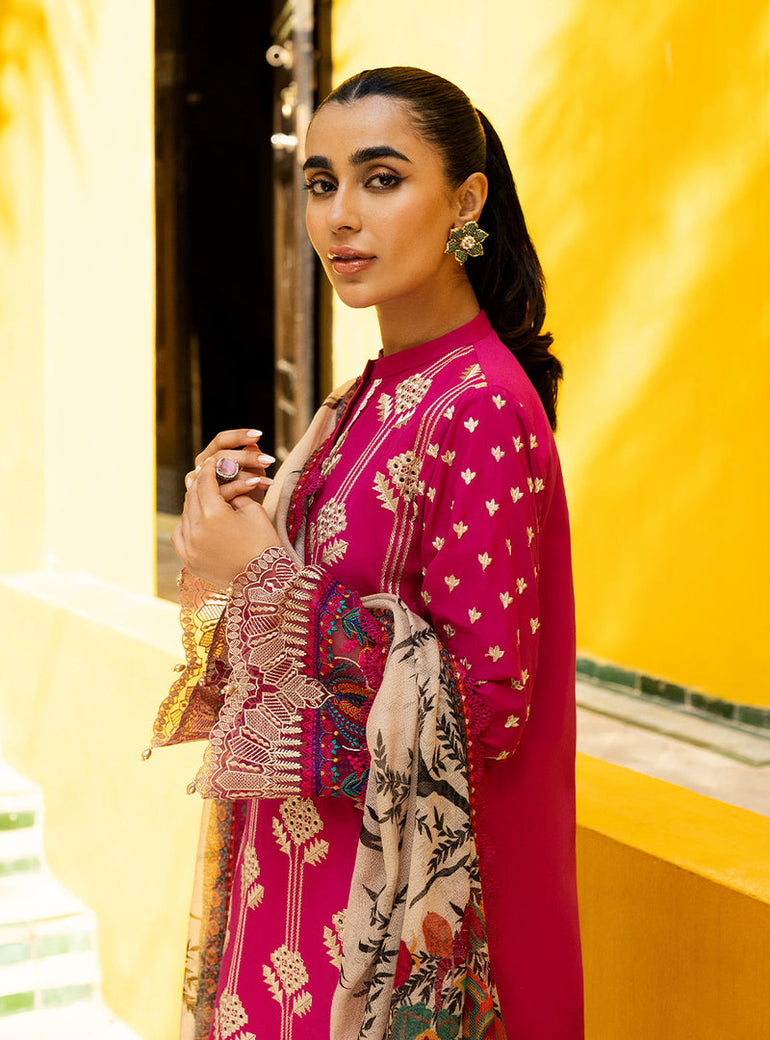 Fabric details: Dyed chikankari embroidered lawn shirt, digital printed net dupatta, plain dyed lawn pants