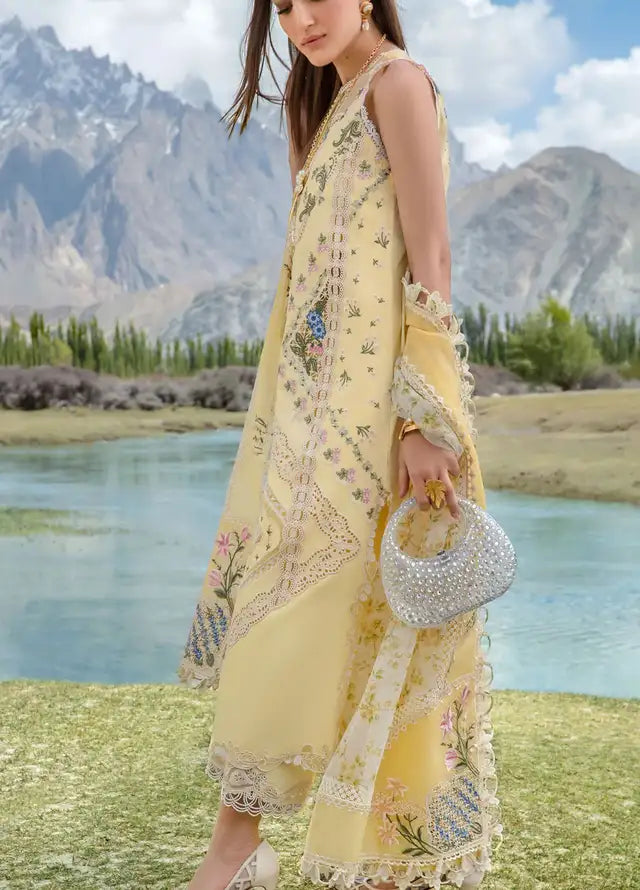 Fabric details: Embroidered lawn shirt, dyed embroidered woven net dupatta, dyed embroidered cotton pants