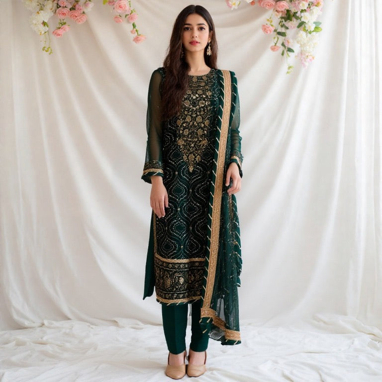Discover the ultimate online shopping experience with our exclusive selection of custom-stitched Pakistani designer outfits for women. We offer a wide range of famous Pakistani brands, and our in-house stitching units create garments tailored to your specific size.
