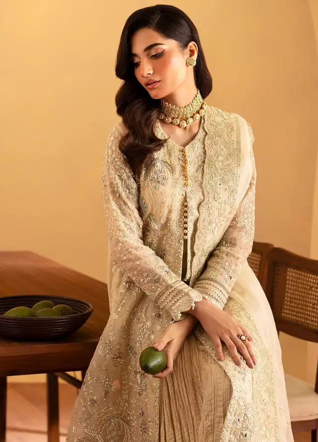 Emaan Adeel original suit stitched & embellished by Blossoms by Azz. Stitching includes your own customized style & size, perfect finishing with premium quality shamoze silk dori piping, trendy embellishments like beads / tassels / pearls / fringes as per customer’s requirements or per model stitching
