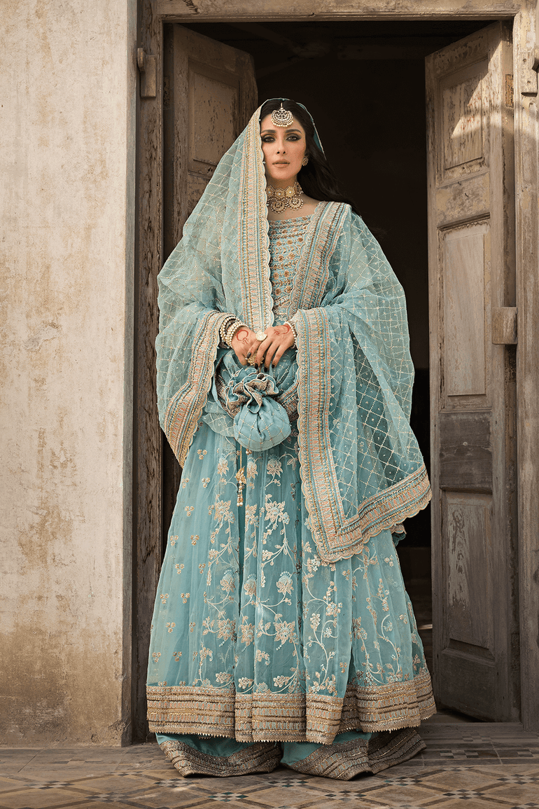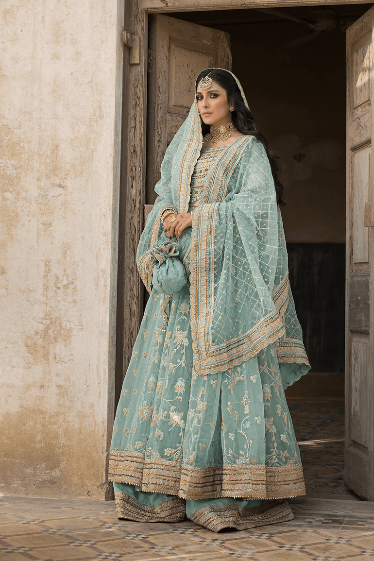 Fabric details: Embroidered organza maxi, embroidered organza dupatta, embroidered raw silk sharara
