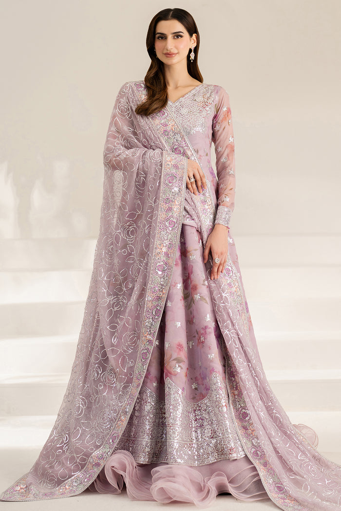 Three piece embroidered printed chiffon suits with embroidered printed chiffon dupattas stitched & embellished by Blossoms by Azz.