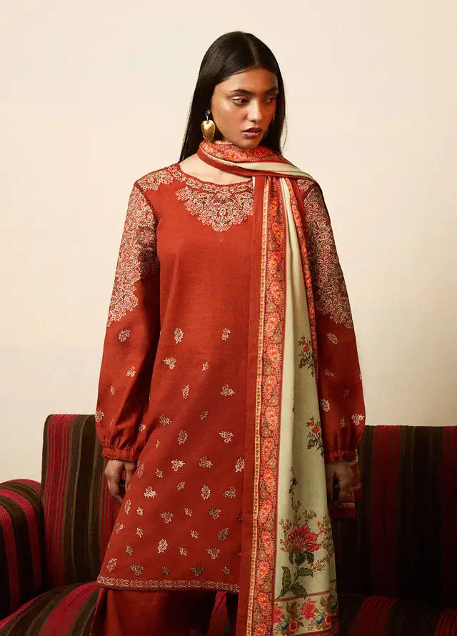This collection includes premium quality three piece embroidered khaddar suit with digital printed wool shawls from latest volume stitched by us at a very affordable price.