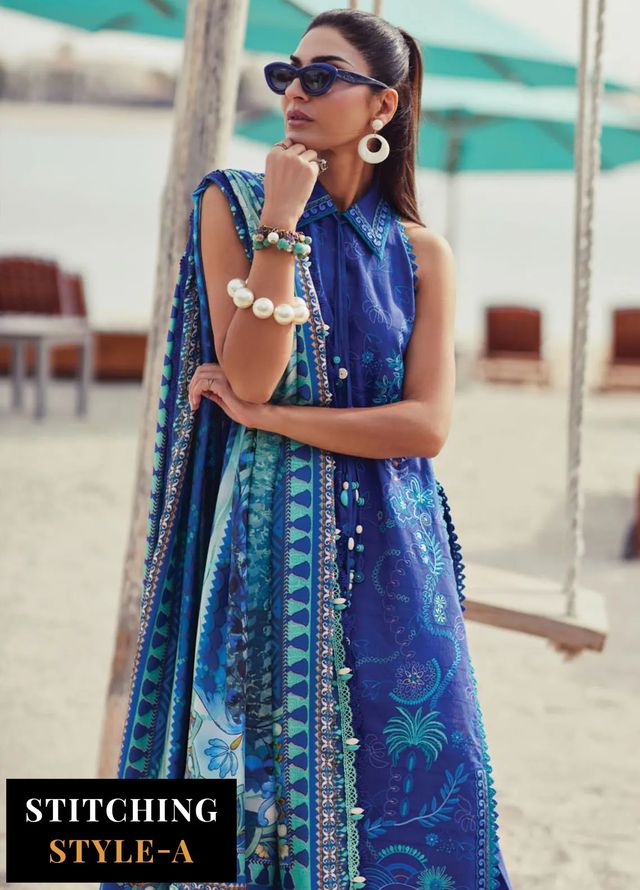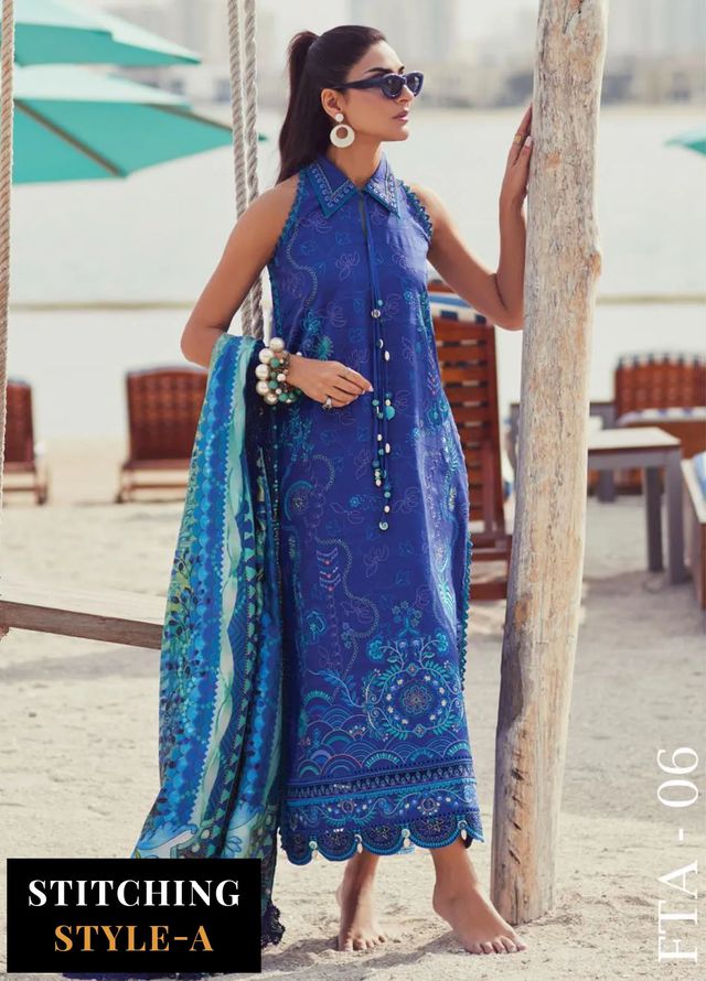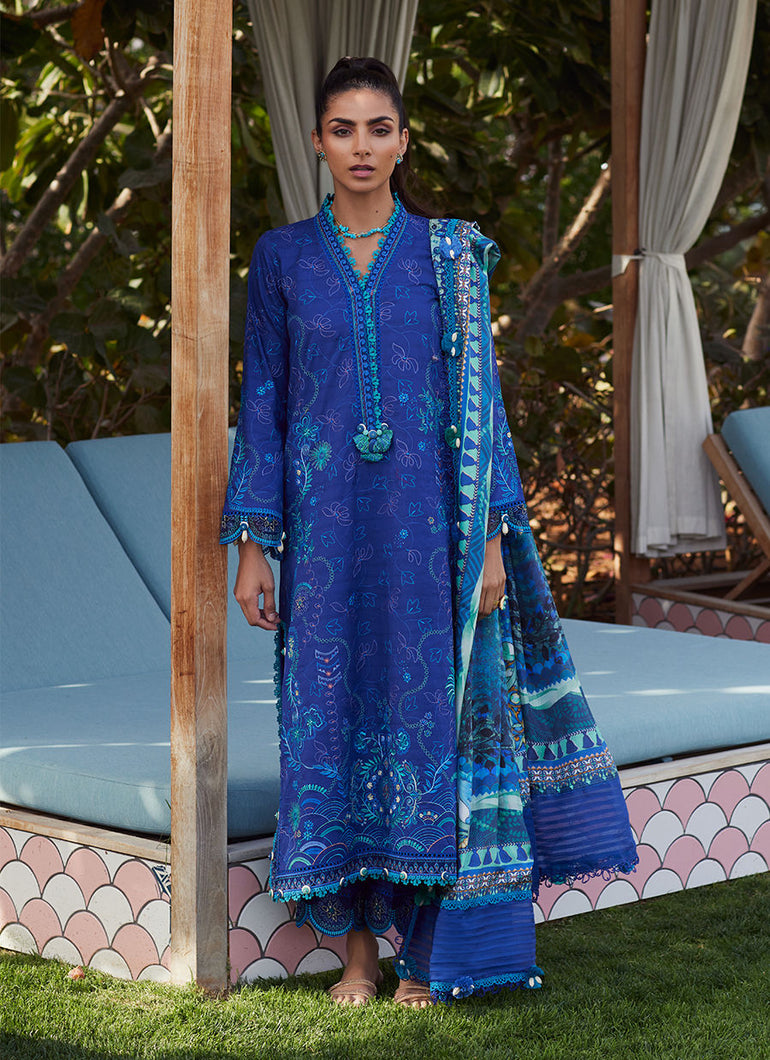 Farah Talib Aziz - Wes Luxury Lawn Collection 2025 - 06 Beryl Deep Blue