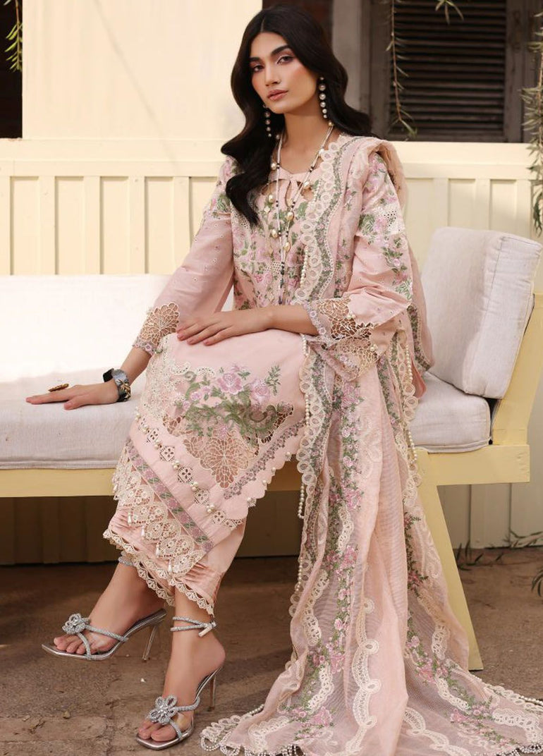 Fabric details: Embroidered lawn shirt, embroidered cotton net dupatta, solid dyed cambric pants