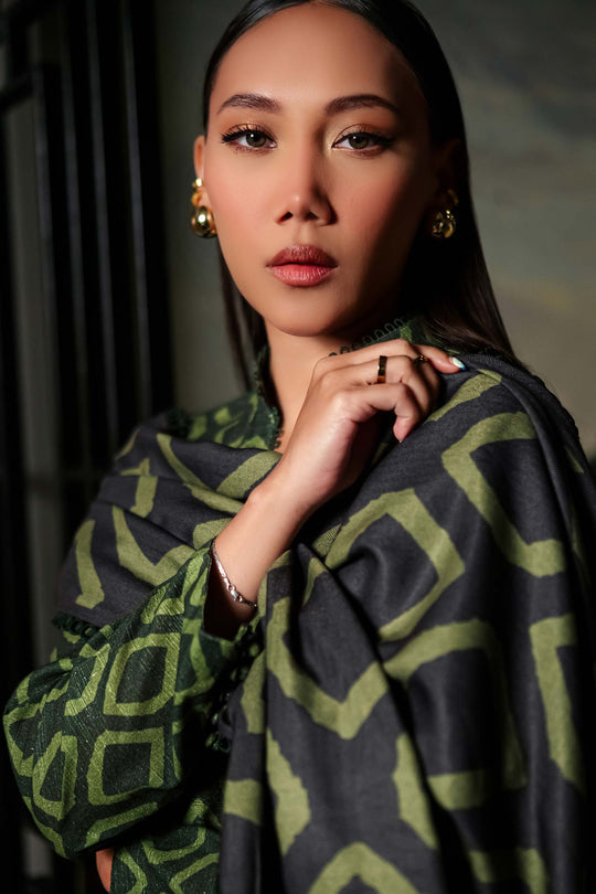 Digital printed slub khaddar shirt, digital printed herringbone shawl, digital printed slub khaddar trousers