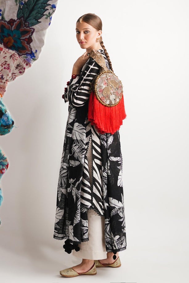 Sana Safinaz original suit stitched & embellished by Blossoms by Azz. Stitching includes your own customized style & size, perfect finishing with premium quality shamoze silk dori piping, trendy embellishments like beads / tassels / pearls / fringes as per customer’s requirements or per model stitching