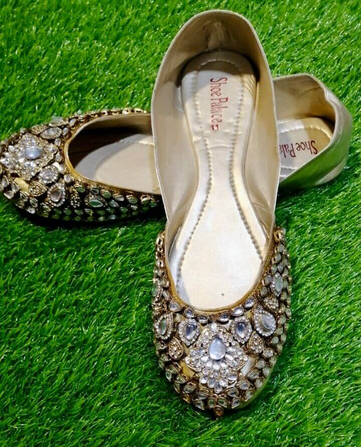 Stone & Kundan Khussas are very popular these days. Goes very well with casual dresses, phulkari dupattas & traditional styling