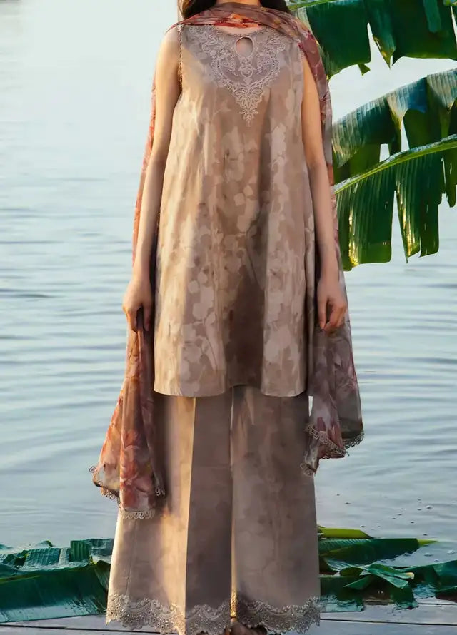 Fabric details: Printed embroidered lawn shirt, printed chiffon dupatta, dyed cambric pants