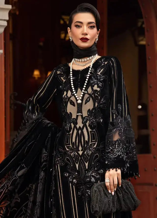 Maria B original suit stitched & embellished by Blossoms by Azz. Stitching includes your own customized style & size, perfect finishing with premium quality shamoze silk dori piping, trendy embellishments like beads / tassels / pearls / fringes as per customer’s requirements or per model stitching