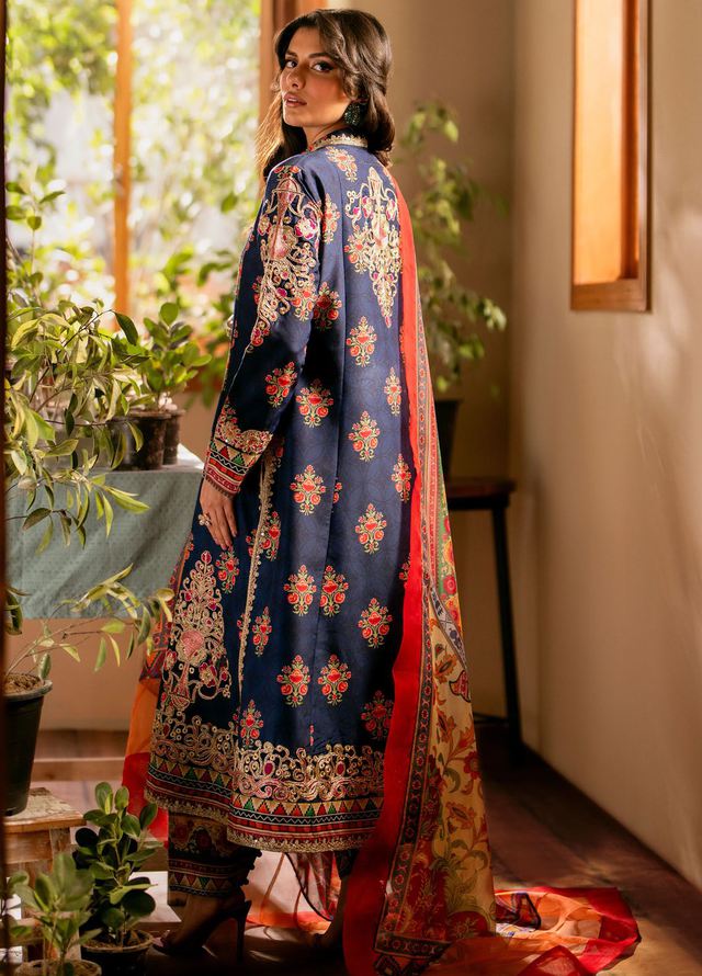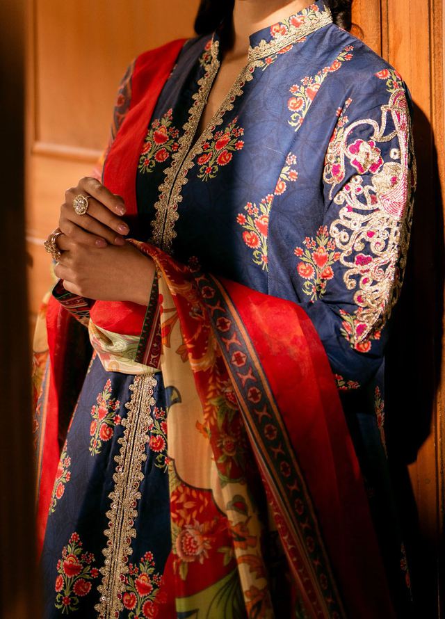 Maryum N Maria original suit stitched & embellished by Blossoms by Azz. Stitching includes your own customized style & size, perfect finishing with premium quality shamoze silk dori piping, trendy embellishments like beads / tassels / pearls / fringes as per customer’s requirements or per model stitching