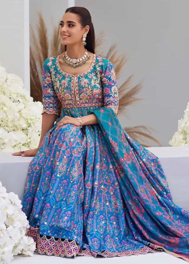 Mina Hasan original outfit stitched & embellished by Blossoms by Azz. Stitching includes your own customized style & size, perfect finishing with premium quality shamoze silk dori piping, trendy embellishments like beads / tassels / pearls / fringes as per customer’s requirements