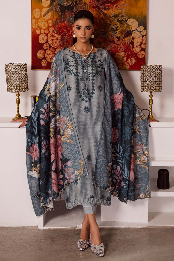 The collection includes a variety of stitched three piece printed linen jacquard suits with printed wool jacquard shawls from latest volume at a very affordable price.