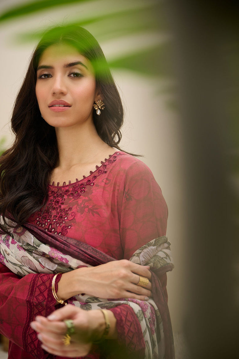 Fabric details: Printed embroidered lawn shirt, printed chiffon dupatta, dyed cambric trousers