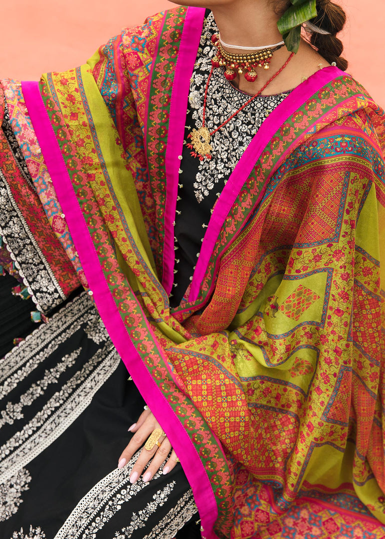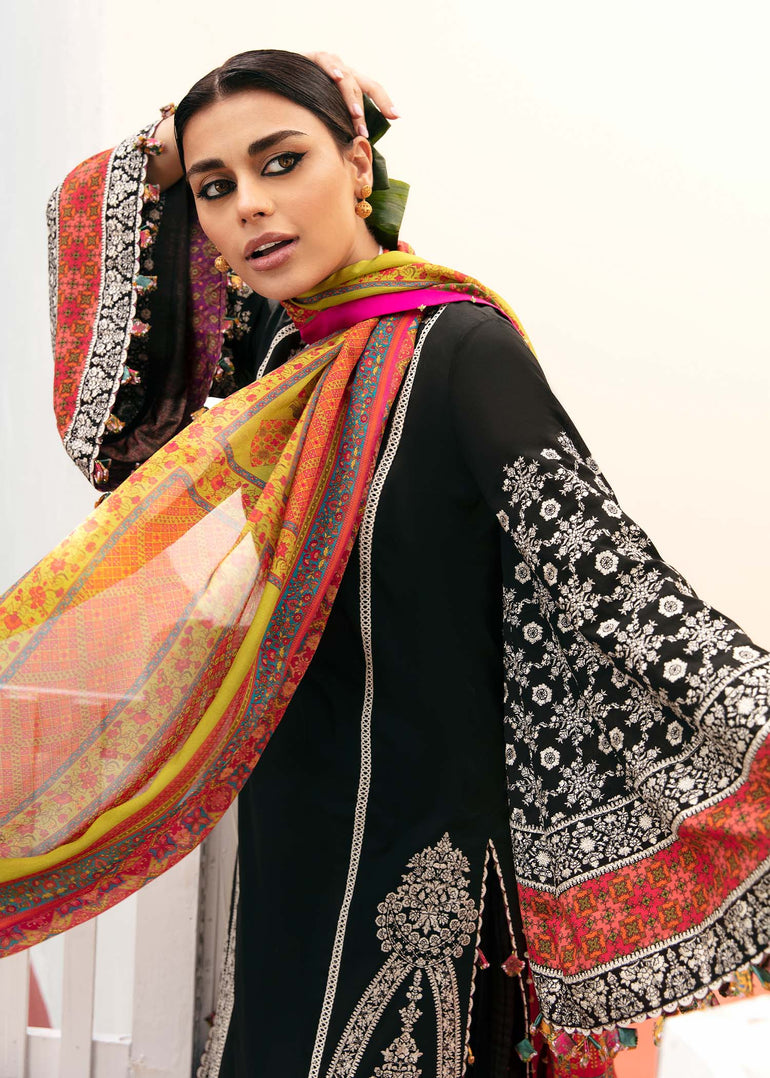 Fabric details: Embroidered lawn shirt, digital printed silk dupatta, dyed cotton dhaka pants