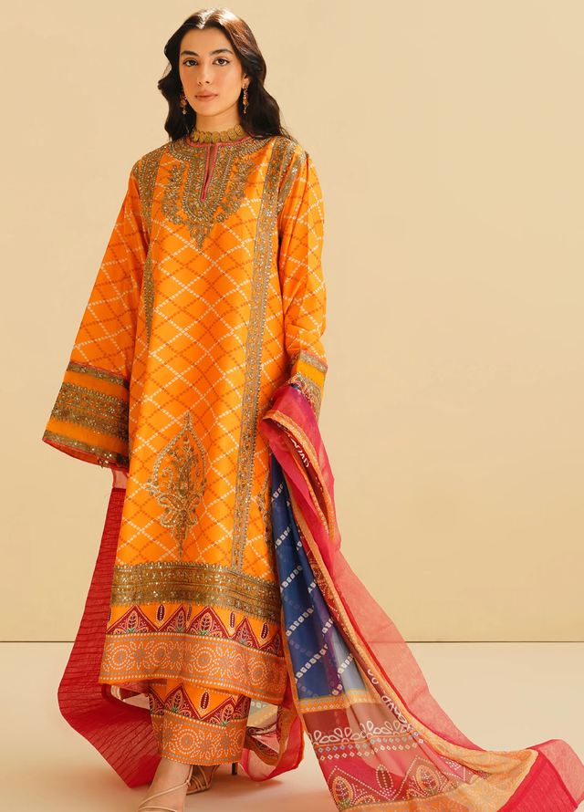 This is original Maryum N Maria product. Please note that actual color may slightly vary from the colors being displayed on your device. This could be due to your own display settings, extreme lighting during photo shoots & picture editing. All fabrics solely belong to the brand itself. We promise 100% genuine original suits. Embellishments, laces & piping might not be provided by the brand, we add them upon customer's request & we try our best to match them at least 90-95% from model pictures