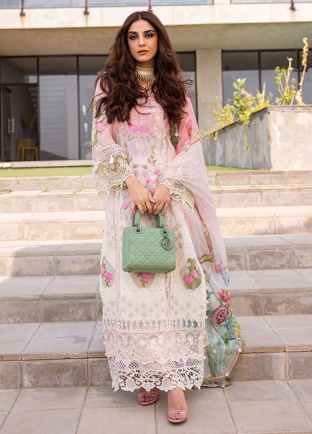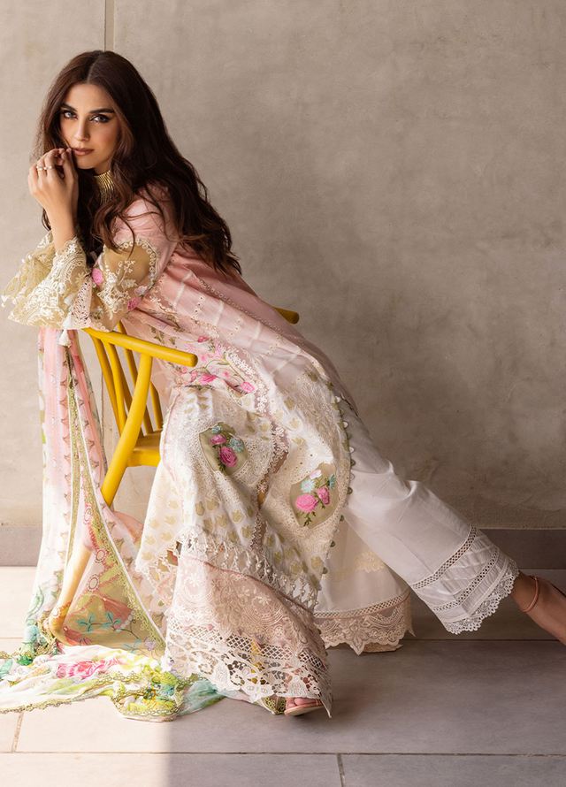 Saira Rizwan original suit stitched & embellished by Blossoms by Azz. Stitching includes your own customized style & size, perfect finishing with premium quality shamoze silk dori piping, trendy embellishments like beads / tassels / pearls / fringes as per customer’s requirements or per model stitching