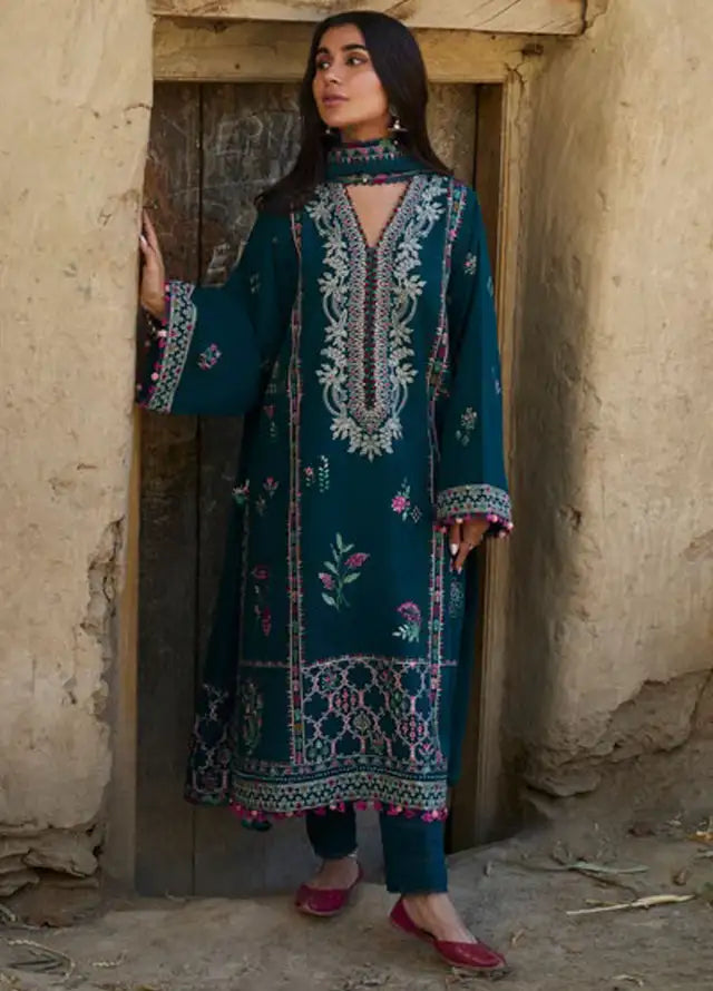 Fabric details: Embroidered khaddar shirt, embroidered viscose dupatta, dyed khaddar trousers