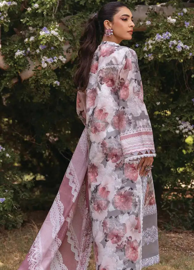 Fabric details: Digital printed embroidered lawn shirt, digital printed jacquard net dupatta, screen printed pants