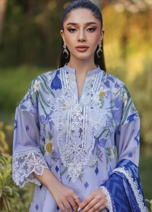 Fabric details: Digital printed embroidered lawn shirt, digital printed chiffon dupatta, digital printed pants