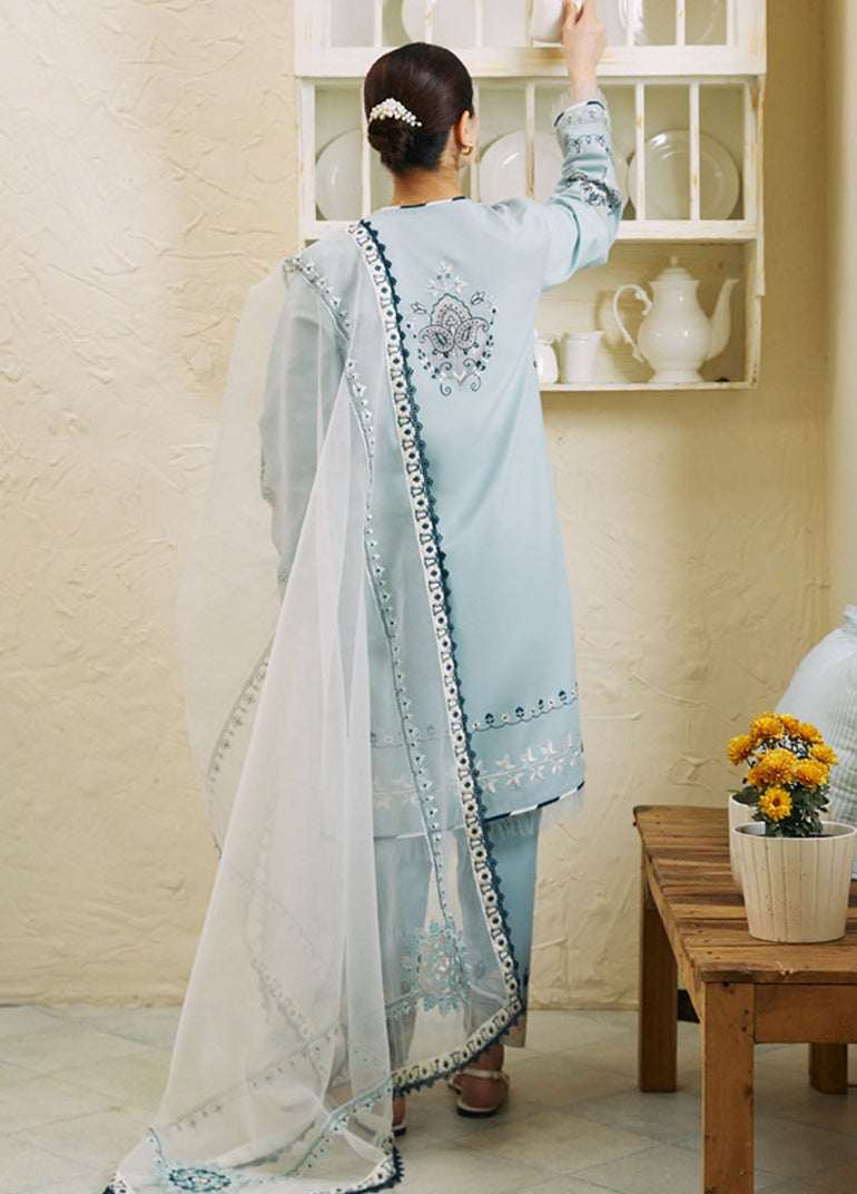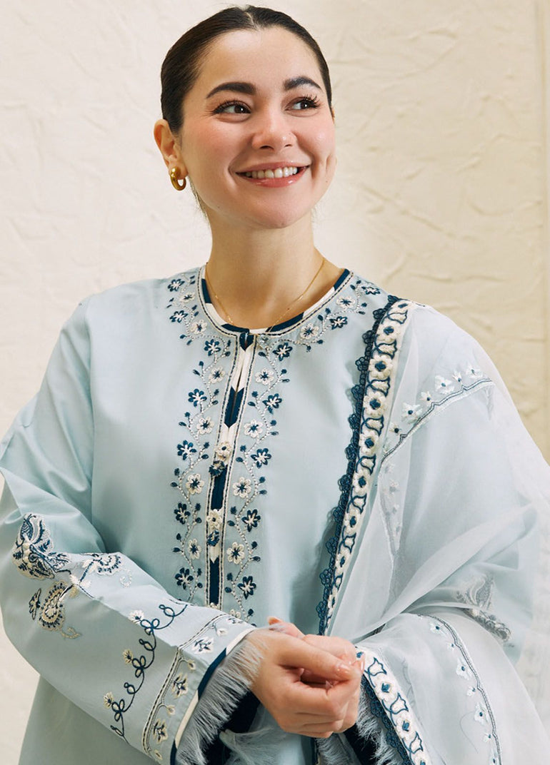 Fabric details: Embroidered lawn shirt, embroidered organza dupatta, embroidered cambric trousers