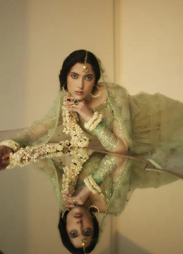 Zara Shahjahan original outfit stitched & embellished by Blossoms by Azz. Stitching includes your own customized style & size, perfect finishing with premium quality shamoze silk dori piping, trendy embellishments like beads / tassels / pearls / fringes as per customer’s requirements
