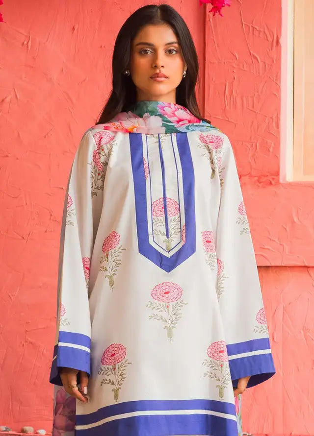 Fabric details: Digital printed lawn shirt, digital printed chiffon dupatta, digital printed cambric trousers