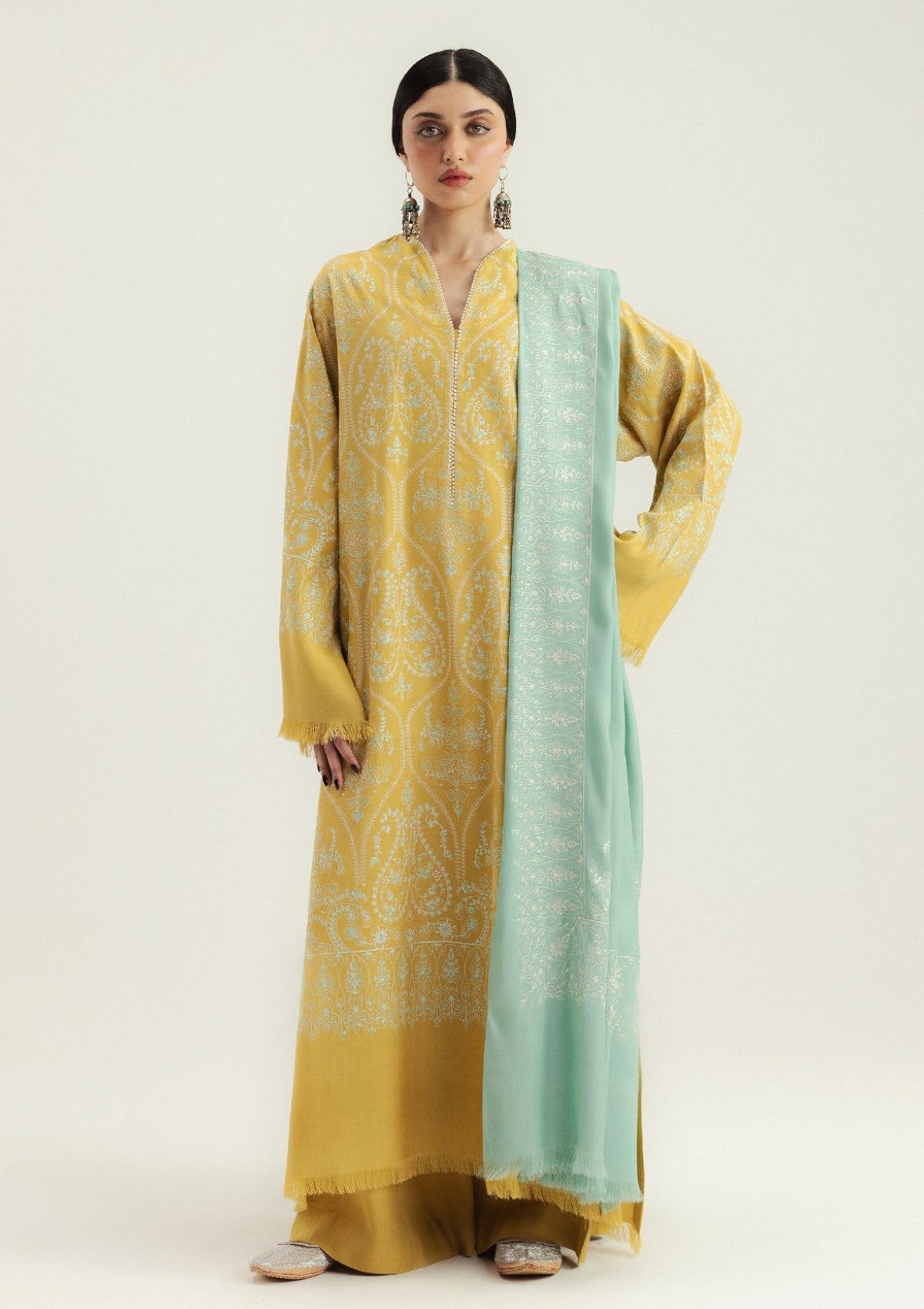 Three piece embroidered marina / KARANDI suits with dyed embroidered marina shawls stitched & embellished by Blossoms by Azz.