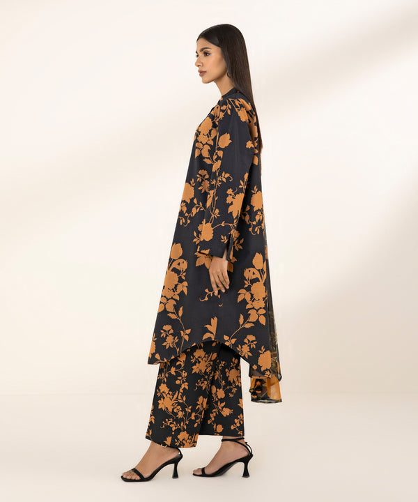 Printed lawn shirt, printed cambric pants, printed blended chiffon dupatta